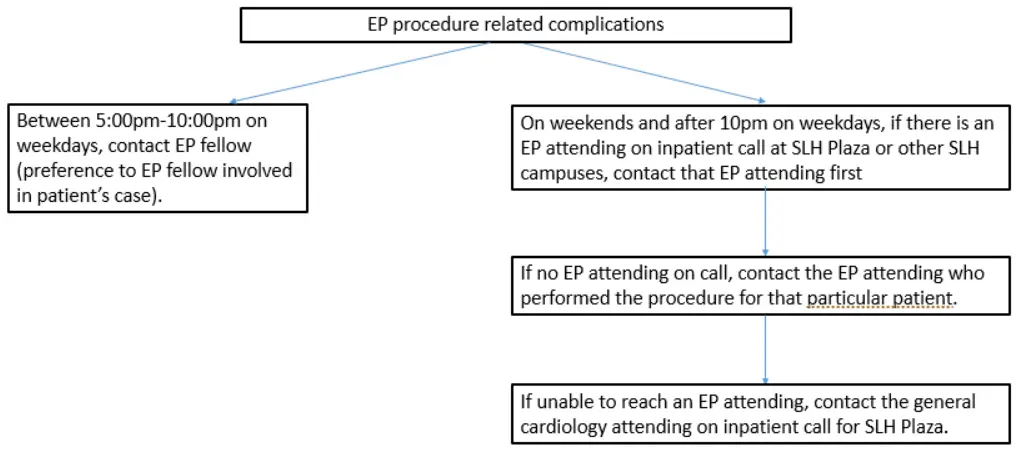 If weekday after 10 pm or weekend, call any EP attending on call at any of the SLH hospitals.