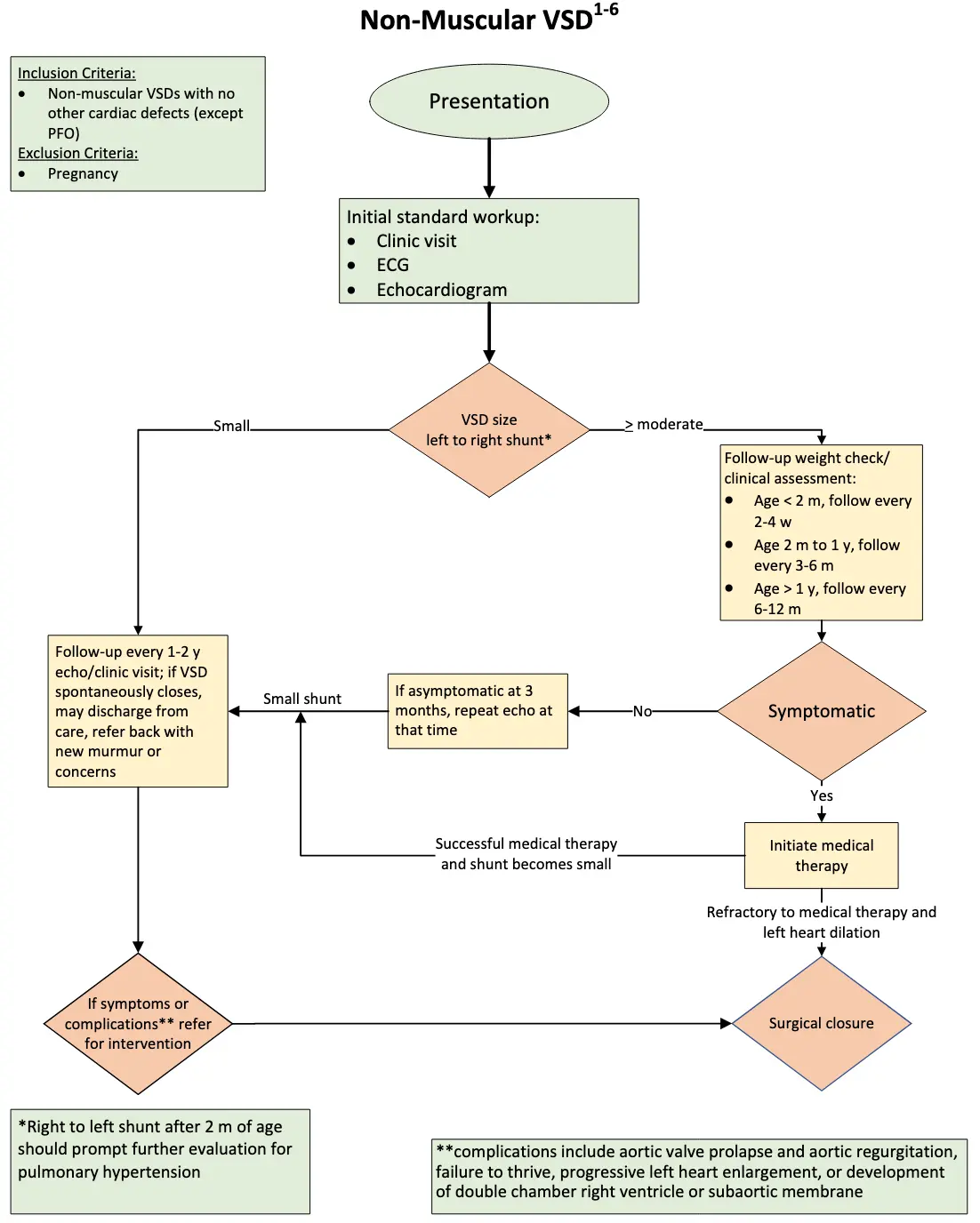- Due to flow dynamics of the VSD, the AV and/or TV can be “sucked into” the VSD → aortic regurgitation and/or tricuspid regurgitation