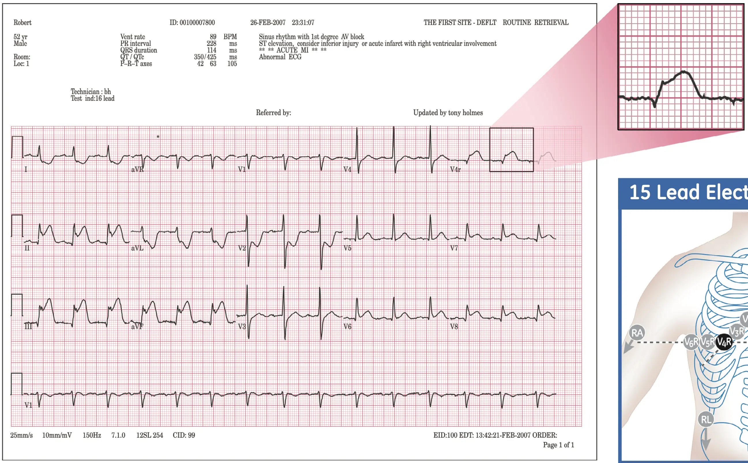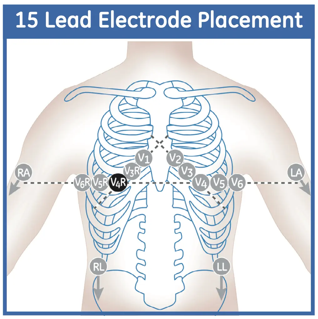 - ACC Guidelines recommend “evidence of RV ischemia/infarction be sought in all patients presenting with inferior ST elevated myocardial infarction” and that it “be assessed with a right precordial V4R lead.” (Source)