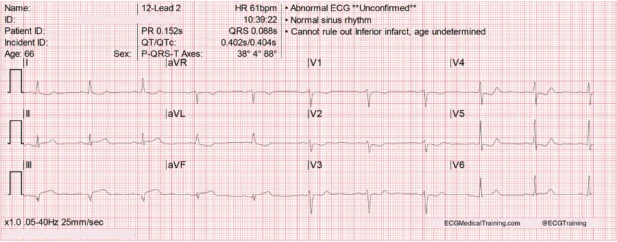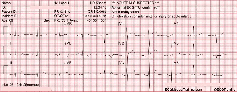 ***ACUTE MI SUSPECTED***message. However, the the downsloping ST-segment in lead aVL should make you suspicious. Further, the STD in the precordial leads should also heighten your suspicion for ACS in this case.