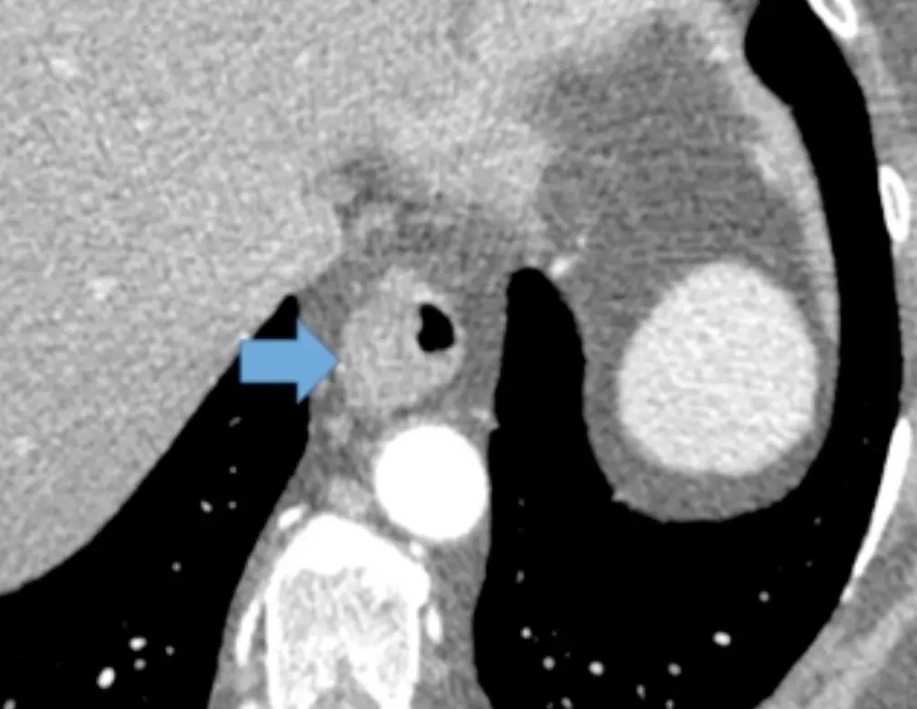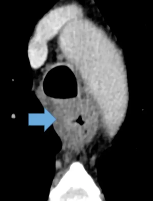 - If thickening if present, consider nonemergent barium esophagram or endoscopy.