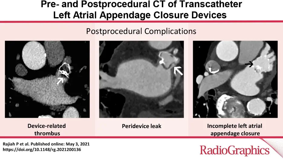 Rajiah P, Alkhouli M, Thaden J, Foley T, Williamson E, Ranganath P. Pre- and Postprocedural CT of Transcatheter Left Atrial Appendage Closure Devices. Radiographics. 2021 May-Jun;41(3):680-698. doi: 10.1148/rg.2021200136. PMID: 33939541. ↩↩2↩3