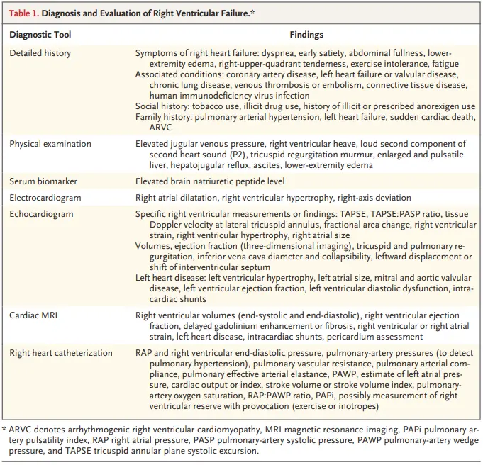 - Symptoms include dyspnea, LE edema, early satiety, abdominal fullness, fatigue, exertional intolerance, and RUQ tenderness.1