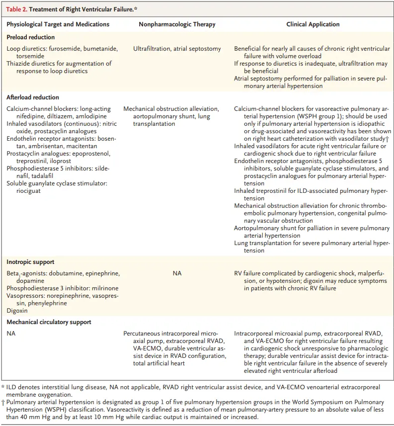 - Patients with chronic RV failure benefit from volume removal and decongestion.1