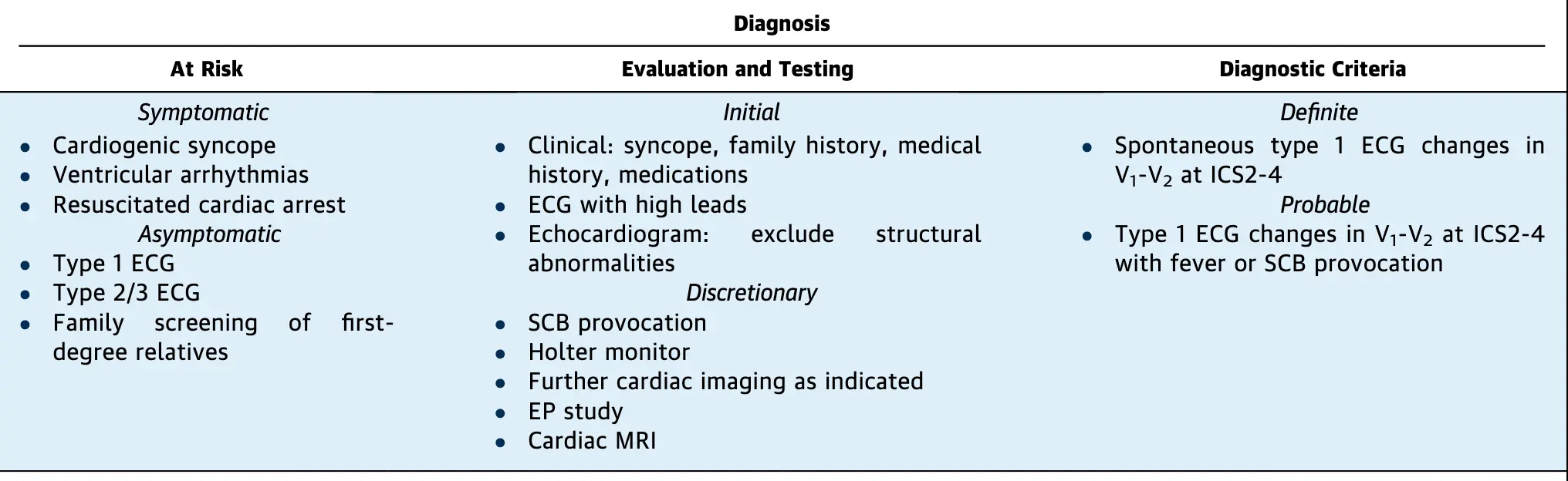 - “coved” ST-segment elevation with T-wave inversion in the right precordial leads