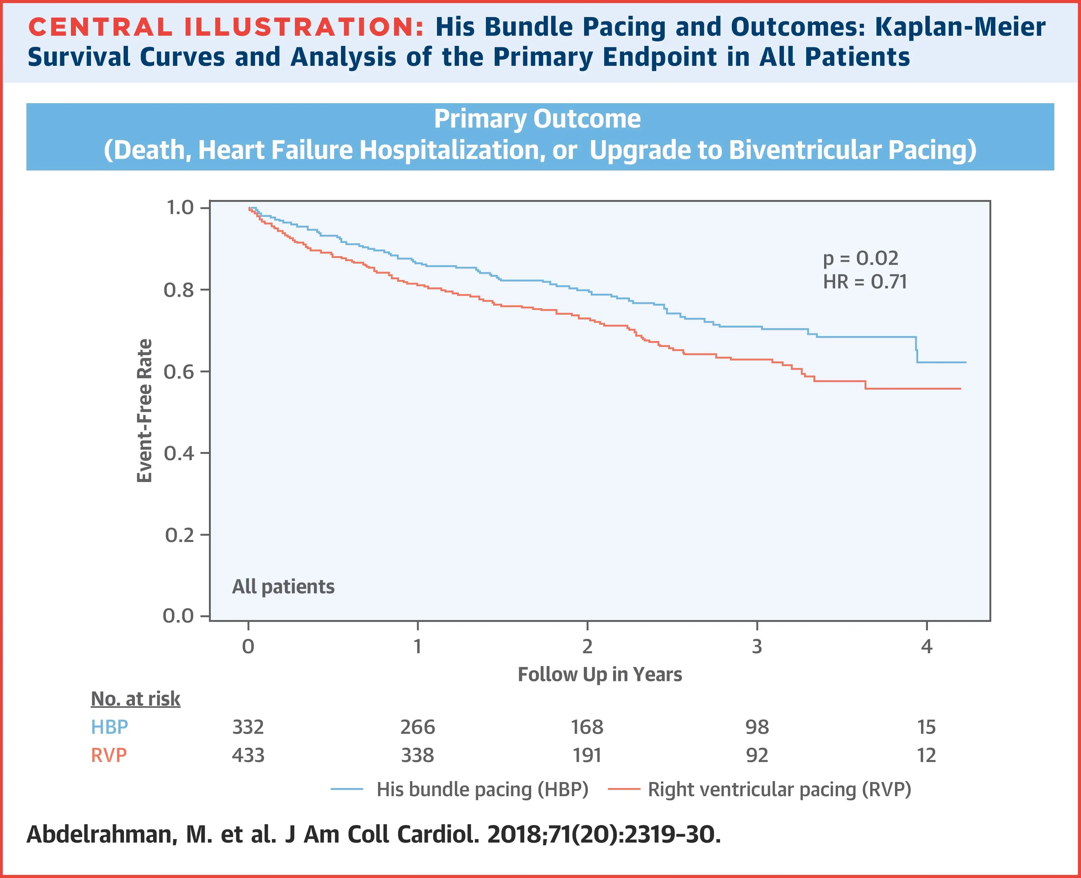 Abdelrahman M, Subzposh FA, Beer D, Durr B, Naperkowski A, Sun H, Oren JW, Dandamudi G, Vijayaraman P. Clinical Outcomes of His Bundle Pacing Compared to Right Ventricular Pacing. J Am Coll Cardiol. 2018 May 22;71(20):2319-2330. doi: 10.1016/j.jacc.2018.02.048. Epub 2018 Mar 10. PMID: 29535066. ↩