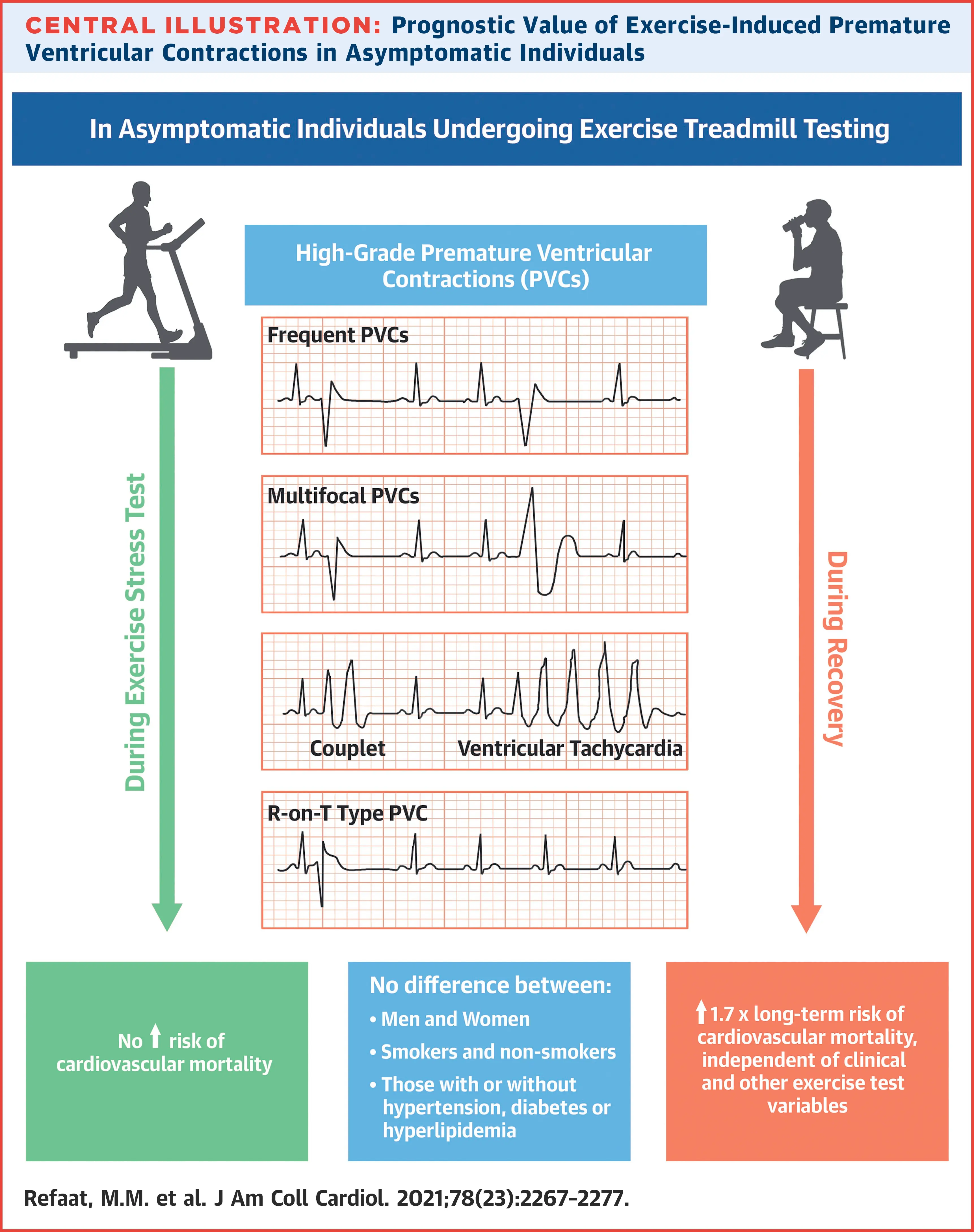 Refaat MM, Gharios C, Moorthy MV, Abdulhai F, Blumenthal RS, Jaffa MA, Mora S. Exercise-Induced Ventricular Ectopy and Cardiovascular Mortality in Asymptomatic Individuals. J Am Coll Cardiol. 2021 Dec 7;78(23):2267-2277. doi: 10.1016/j.jacc.2021.09.1366. PMID: 34857087; PMCID: PMC8720278. ↩