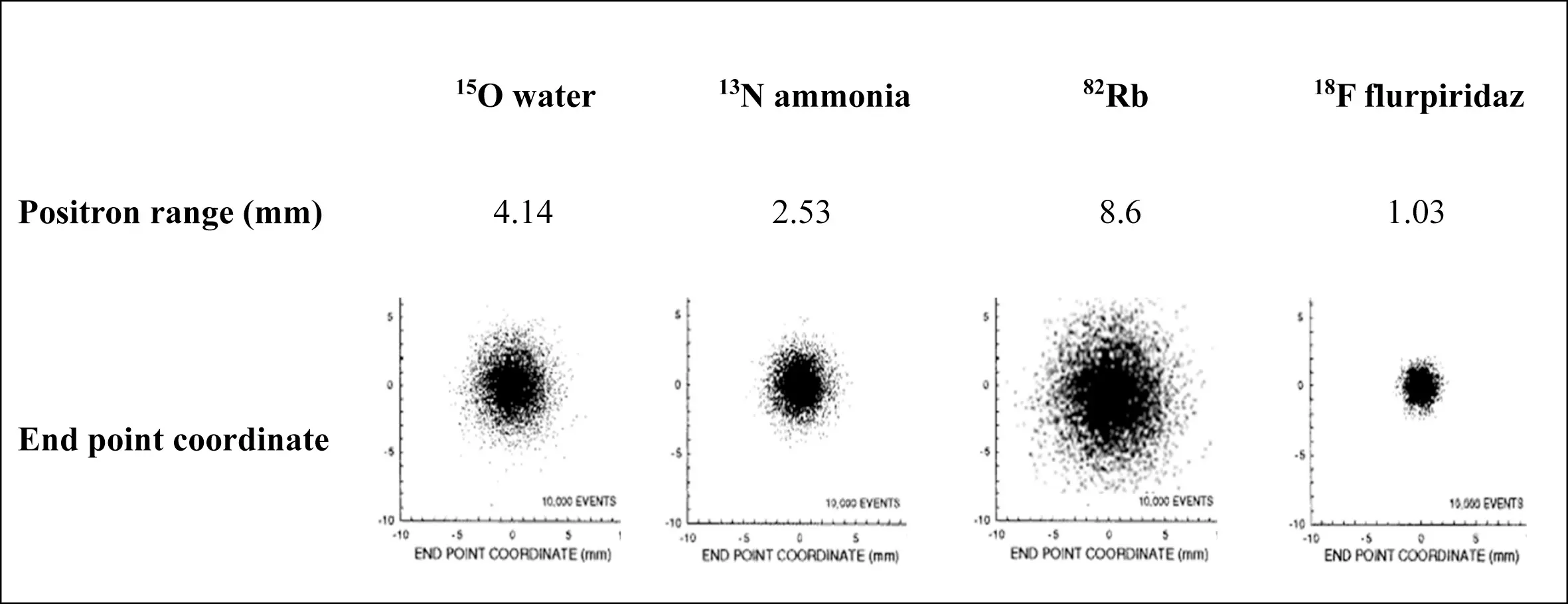 - F18 flurpiridaz has the best positron range of the available PET radiotracers at 1 mm❗