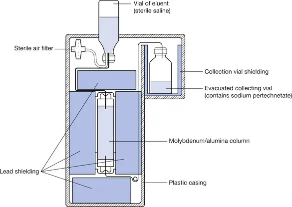 - Generator is replaced every 6 weeks, thus obviating the need for a cyclotron.