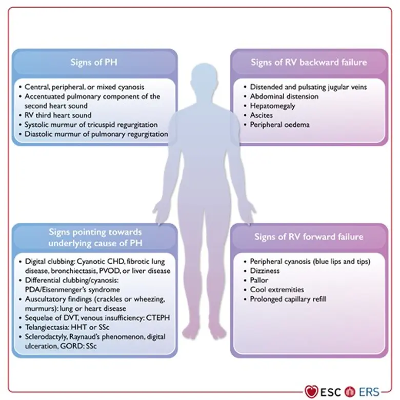 Humbert M, Kovacs G, Hoeper MM, Badagliacca R, Berger RMF, Brida M, Carlsen J, Coats AJS, Escribano-Subias P, Ferrari P, Ferreira DS, Ghofrani HA, Giannakoulas G, Kiely DG, Mayer E, Meszaros G, Nagavci B, Olsson KM, Pepke-Zaba J, Quint JK, Rådegran G, Simonneau G, Sitbon O, Tonia T, Toshner M, Vachiery JL, Vonk Noordegraaf A, Delcroix M, Rosenkranz S; ESC/ERS Scientific Document Group. 2022 ESC/ERS Guidelines for the diagnosis and treatment of pulmonary hypertension. Eur Heart J. 2022 Oct 11;43(38):3618-3731. doi: 10.1093/eurheartj/ehac237. Erratum in: Eur Heart J. 2023 Apr 17;44(15):1312. doi: 10.1093/eurheartj/ehad005. PMID: 36017548. ↩ ↩2 ↩3 ↩4 ↩5
