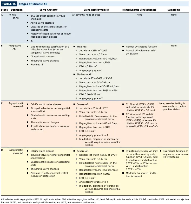 - D: severe, symptomatic AR