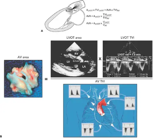 - the LV outflow tract to transaortic valve velocity-time integral (more reliable method)