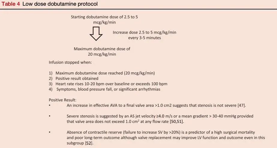 - Some patients fail to show an increase in stroke volume ≥20% with dobutamine, referred to as “lack of contractile reserve” or “lack of flow reserve.”