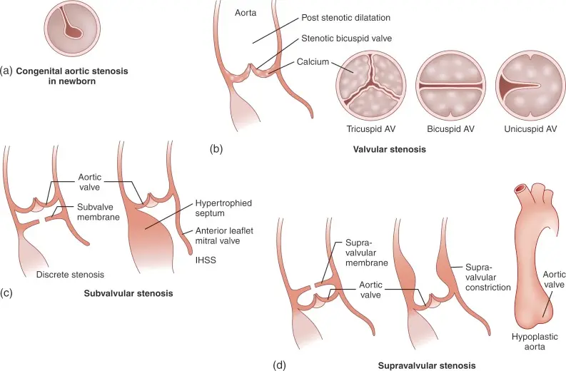 - Level of obstruction above the aortic valve, i.e. at the aorta