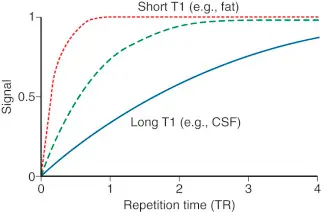 - When this rate of regrowth is mapped over time, the T1 time constant is the amount of time it takes to regain 63% of the intrinsic (full) magnetization ()